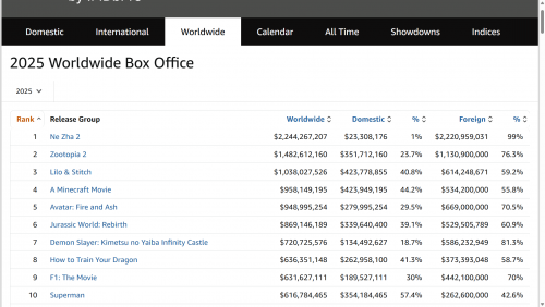 Estúdios de dublagem das 10 maiores bilheterias mundiais de 2025: