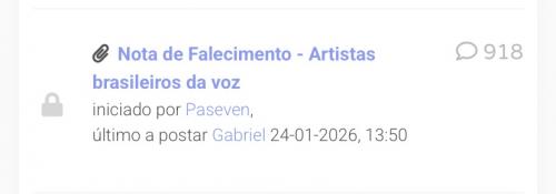 (04-02-2026, 23:32 )crbzxd Escreveu: Essa notícia da morte dele realmente me abalou. Eu cheguei até a divulgar a vaquinha dele na Dublagem Wiki, porque acreditei que tinha que ser espalhada o máximo possível. Ninguém queria que isso acontecesse, ele foi uma lenda da dublagem e sempre irá continuar sendo. Sinceramente eu não tô conseguindo acreditar que ele se foi, a voz dele é tão marcante, a gente consegue lembrar dos trabalhos, atores e personagens que ele dublou, que a voz dele irá fazer muita falta, uma grande perda pra dublagem brasileira como um todo. lembro quando o Júlio Chaves faleceu, me senti assim também, descanse em paz Ricardo e que Deus conforte seus familiares. (Tanjiro) (Rengoku)Me lembrou muito daquela cena... Teve mais gente enlutada? Se tiver um post do insta de alguém, só me avisar. E outra coisa: qual foi o último trabalho dele?
