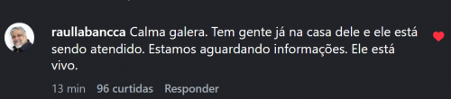 (29-03-2026, 08:24 )GiovanniTav Escreveu: O Raul Labancca confirmou que o Clécio está sendo atendido e está vivo, graças a deus